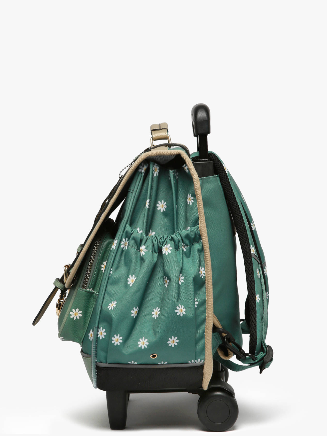 41 cm - 31 liter - 2.6 kg ~ Deze 41 cm trolley-schooltas met drie vakken uit de Vintage Fantasy-lijn van Caméléon is ideaal voor groep 5 en 6. We houden van deze schooltas vanwege de grote opbergruimte: hij heeft drie vakken waarin schriften en ordners tot 32x29x7 cm passen. Ook is er een binnenvak met ritssluiting. Aan de buitenkant zijn er twee voorvakken met ritssluiting en een zijvak voor een drinkfles. Voor de veiligheid van uw kind is er een reflecterende strip aan de voorkant aangebracht. De bodem en zijkanten zijn verstevigd, wat zorgt voor dagelijks gebruiksgemak. De tas kan ook als rugzak worden gedragen dankzij afneembare schouderbanden die in het achtervak opgeborgen kunnen worden, en een gewatteerde beschermlaag bij de wielen om de rug van uw kind te beschermen. Voor optimale ondersteuning zijn de schouderbanden en de rug gewatteerd. Als extraatjes heeft deze schooltas een naamlabel, een gratis liniaal en een Caméléon-sleutelhanger aan het handvat!