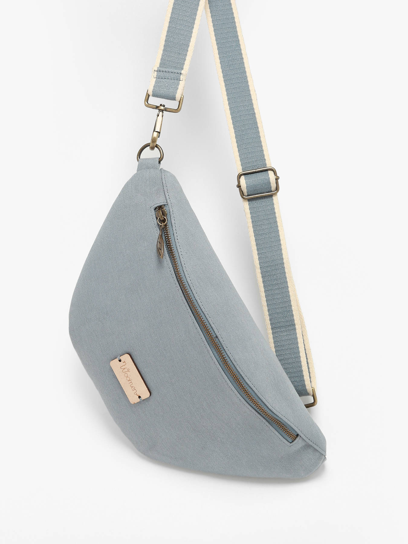 Deze ruime belt bag uit de Figuier collectie van Woomen is gemaakt van katoen, afgewerkt met een gestreepte canvas schouderriem. Deze is in lengte verstelbaar, en kan gekruist over de borst of in de taille gedragen worden. De charmante ritssluiting, in de vorm van een blaadje, is een knipoog naar het ecologische concept van het merk. Binnenin is een mediumgroot interieur met linnen voering voorzien. Kleinere spulletjes kunnen worden opgeborgen in het handige rits- en steekvakje. Praktisch én stijlvol! Het merk Woomen gebruikt geen materialen van dierlijke oorsprong, en is daarom vegan gecertifieerd door het label EVE Vegan. Ook probeert het merk z'n ecologische voetafdruk tot een minimum te herleiden, door het gebruik van ecologische en/of gerecycleerde materialen. Woomen kiest ook voor transport met een lage CO²-uitstoot.